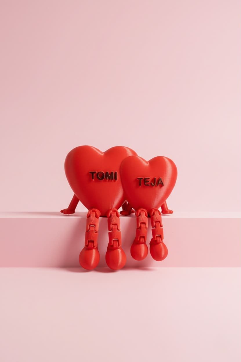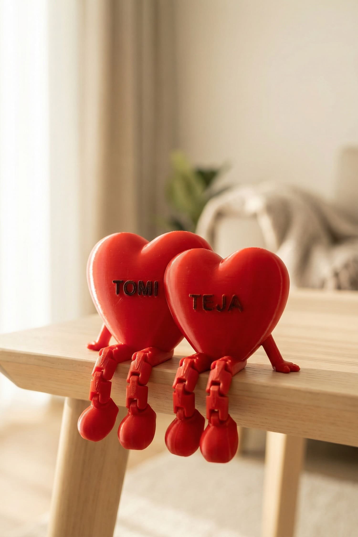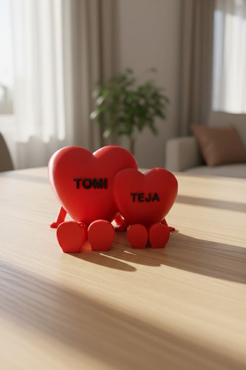 Vsak srček nosi ime ali besedo po tvoji izbiri, zato izdelek postane nekaj povsem osebnega – majhen simbol vajine zgodbe, zapisan samo za vaju. Ko ju postaviš na polico ali mizo, ne delujeta kot dekoracija, temveč kot spomin.