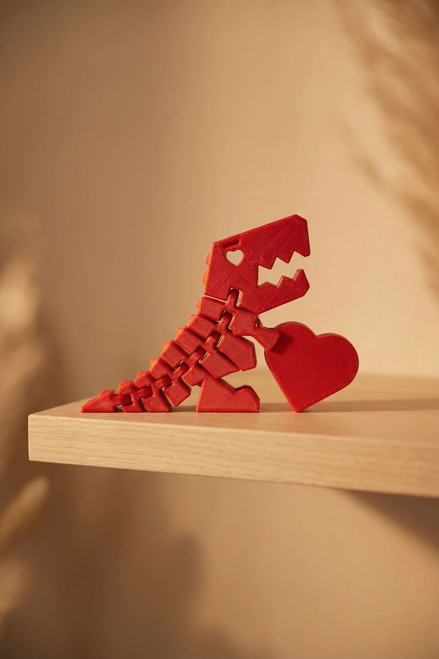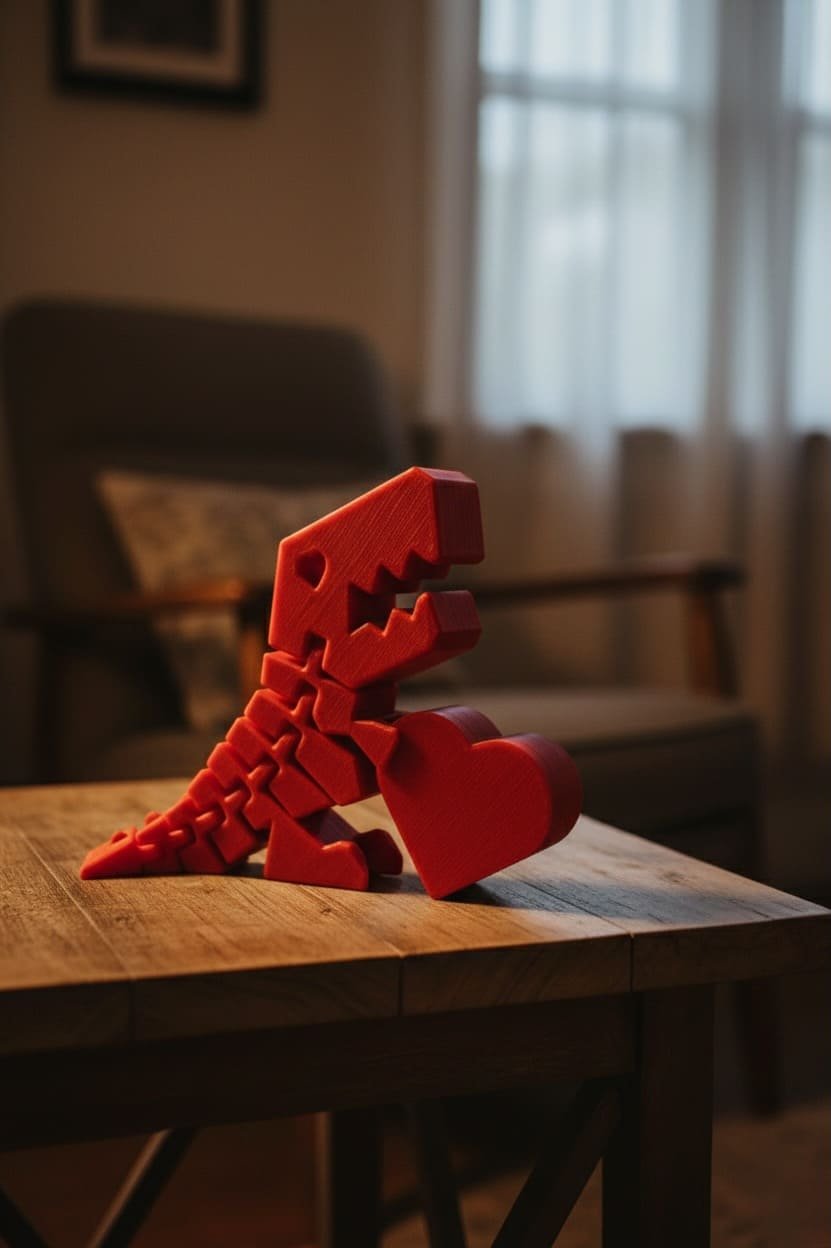 Srček, ki ga drži ob sebi, doda nepričakovano nežnost in ustvari zanimiv kontrast njegovi močni silhueti. Rdeča barva poudari valentinovski značaj, izdelek pa lepo zaživi kot dekor na polici, mizi ali delovnem kotičku.